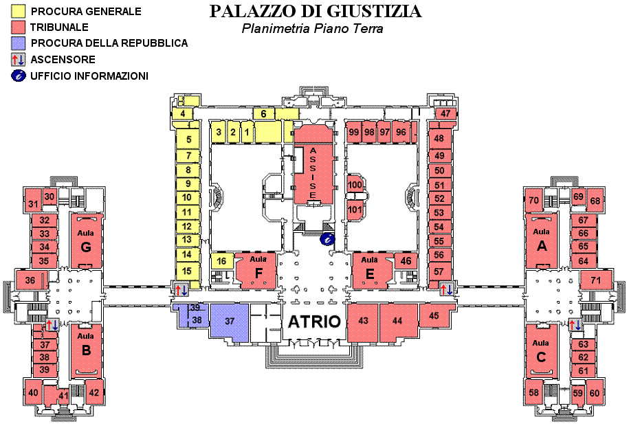 Gli Uffici Giudiziari di Messina sono in gran parte localizzati presso "Palazzo Piacentini", che è situato in Piazza Pugliatti/Via T. Cannizzaro (ME). Esso ospita il Tribunale Ordinario nonché la Corte di Appello, la Procura Generale e la Procura della Repubblica. All’interno dello stesso Palazzo è ubicato anche il Consiglio dell’Ordine degli Avvocati. L' U.N.E.P. ha sede, invece, nella vicina via San Domenico Savio, mentre la Sezione Lavoro del Tribunale e gli Uffici del Giudice di Pace sono siti in via Campo delle Vettovaglie s.n.c.. L’accesso del pubblico al Palazzo di Giustizia è consentito dal portone principale di Piazza Pugliatti dal lunedì al sabato. I soggetti con difficoltà motoria possono accedere dall'ingresso secondario posto in via Nicola Fabrizi. |